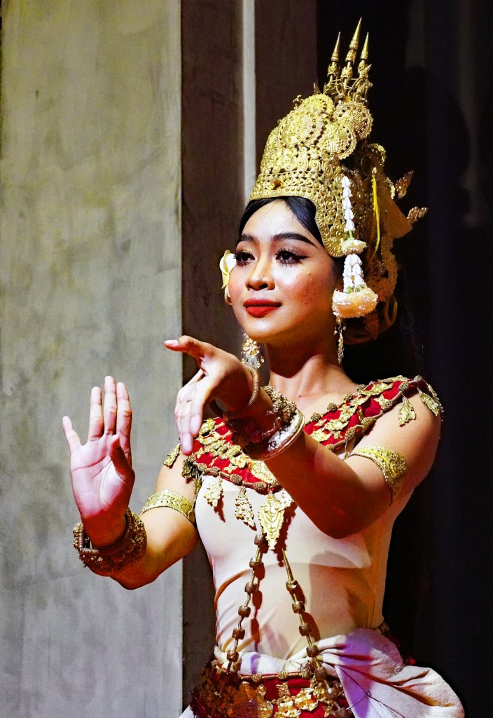 The Apsara dance is exclusively performed by female dancers and is a visual representation of the apsaras, or celestial nymphs, who descended from heaven to entertain and delight mortals. The dancers move gracefully and modestly, yet also with an agility and poise that is truly captivating, characterized by its intricate hand gestures, or mudras. In this dance form, hand gestures are used to convey a wide range of emotions, ideas, and stories, and they are closely tied to nature, mythology, and daily life.