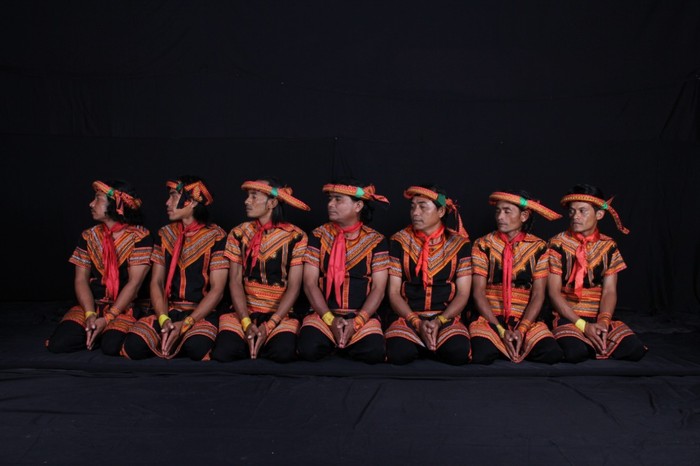 The performers don elaborate costumes with flowered headdresses, pearl chokers, floral garlands, and long pink skirts with gleaming threads, adding a visual appeal to the performance. They are accompanied by a live percussion and gong ensemble that enhances the overall experience.