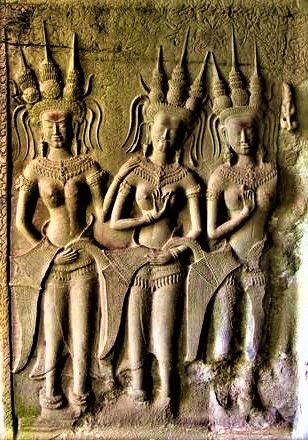 The Apsara dance postures, including the arch of the back, the tilt of the head, and the angle of the wrist, convey stories frozen in fleeting moments.