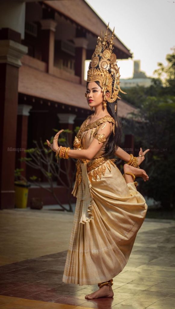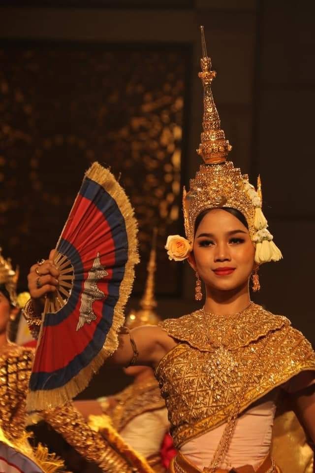 The costume narrates its own tale, representing a harmonious fusion of artistry, tradition, and symbolism, offering a visual showcase of Cambodia’s cultural richness.